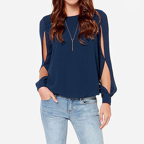 This chiffon top is chic style since it is designed with long open sleeves and double snap-button closure