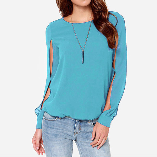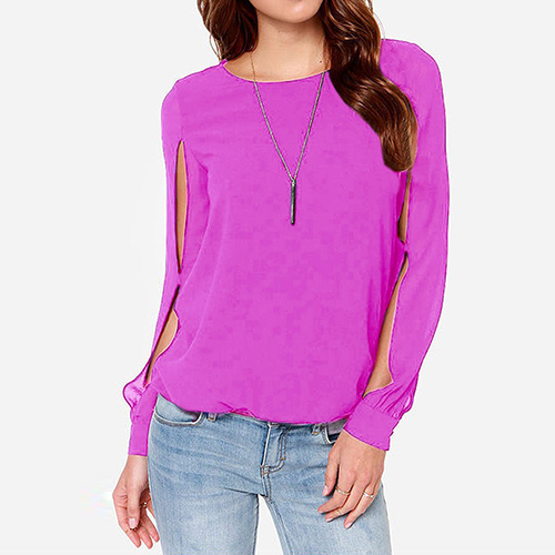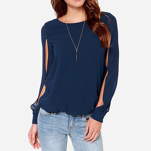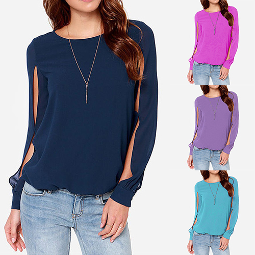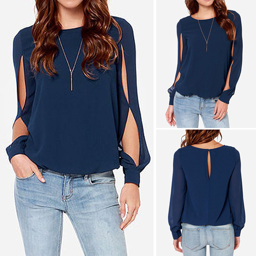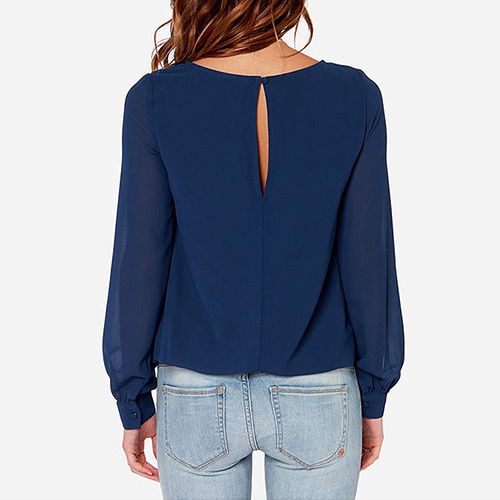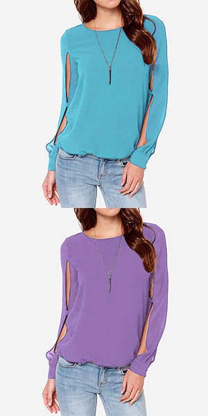 while it is also styled with a buttoned keyhole back. Moreover, this chiffon top is solid color and you can