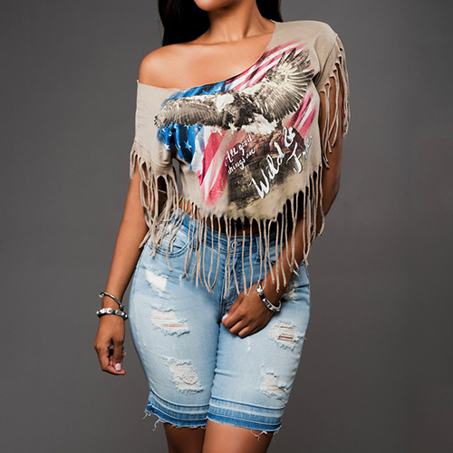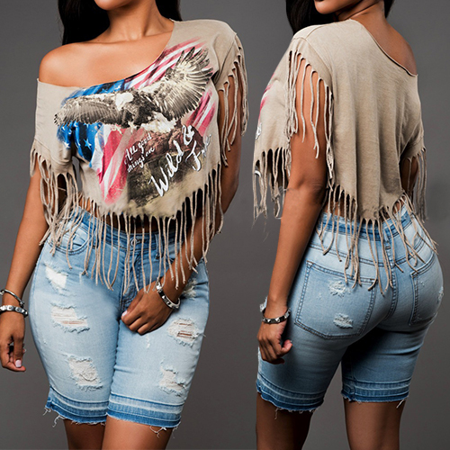Wanna a chic street style? Then slip into this tops. Its tassel design and chic printed pattern makes