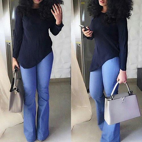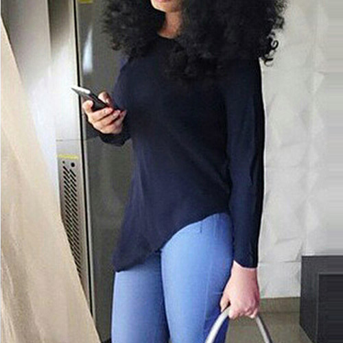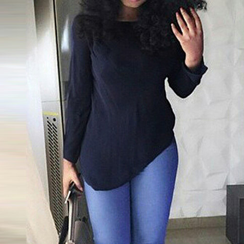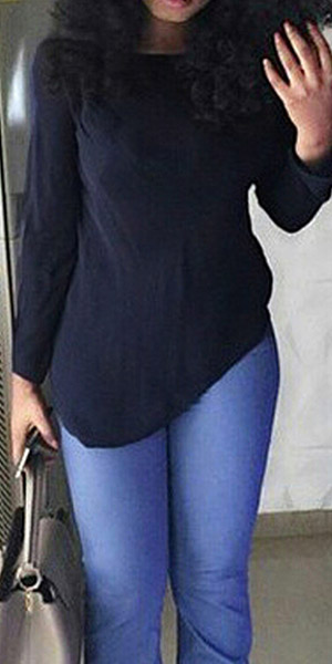 A slim fit style, designed with round neck, long sleeve and irregular hemline, giving it a simple