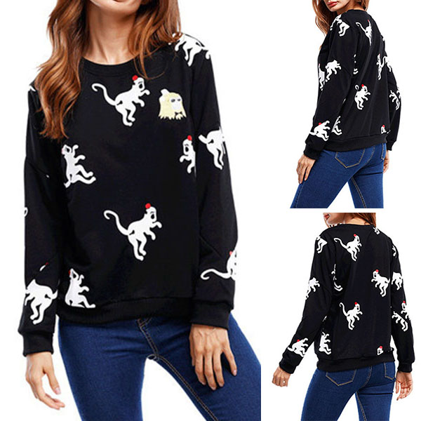 sleeve,round neck and cozy fabric,this sweatshirt can keep you comfy and stylish,while the animal printed pattern design