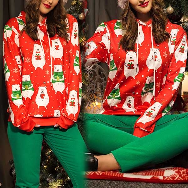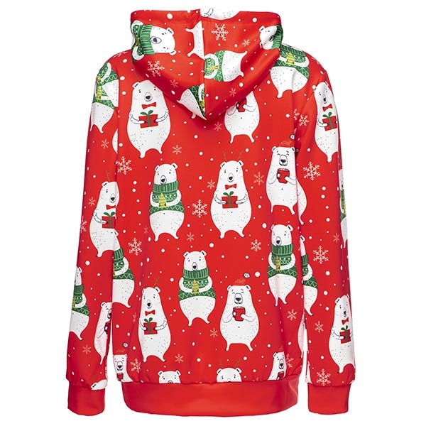 eye-catching cartoon bear printed pattern. Finished with long sleeve,hooded silhouette and front