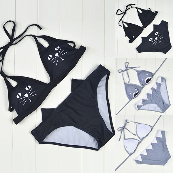 For your summer beach days,this bikini set would be your ideal partner. Its cartoon pattern makes it look so cute,while its soft