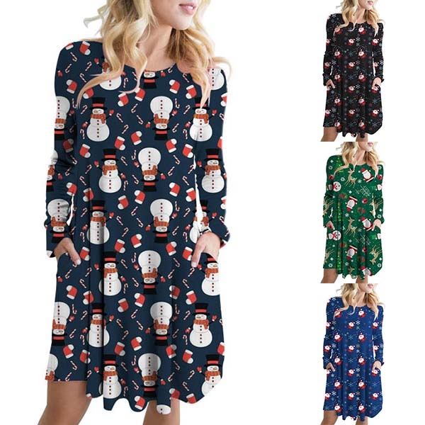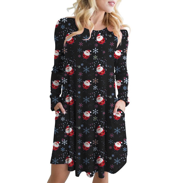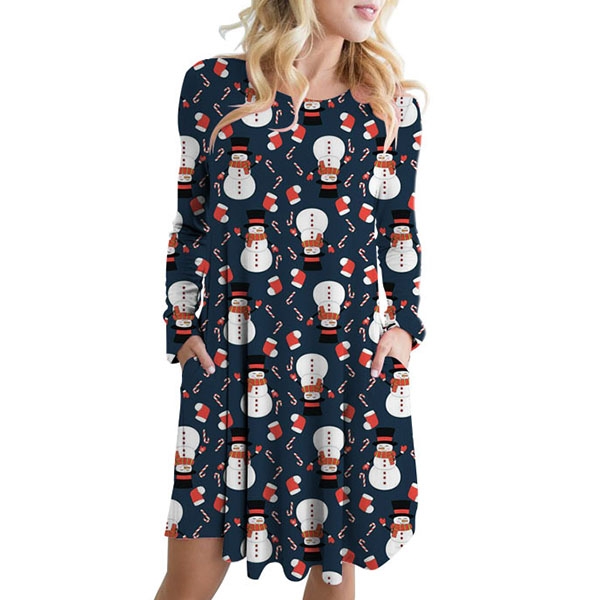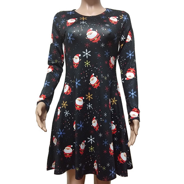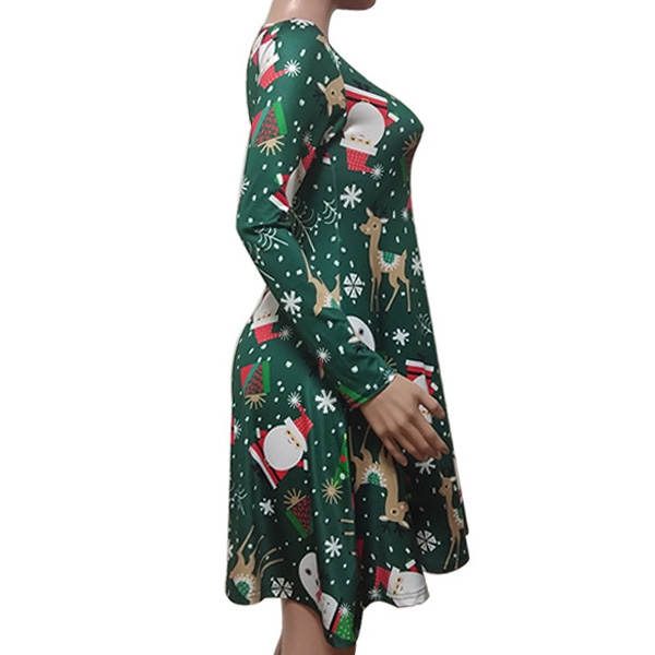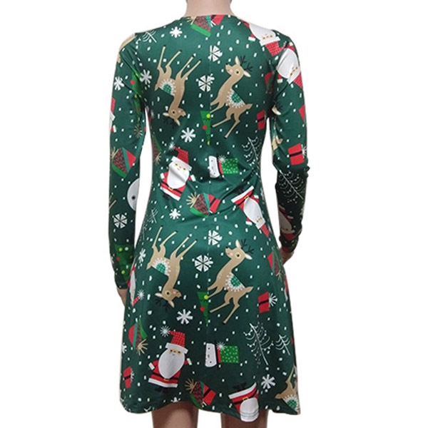 Greet the arrival of the Christmas Day with this beautiful dress. The cartoon printed pattern design
