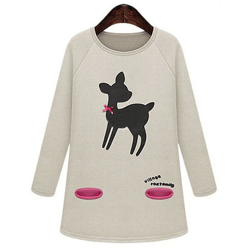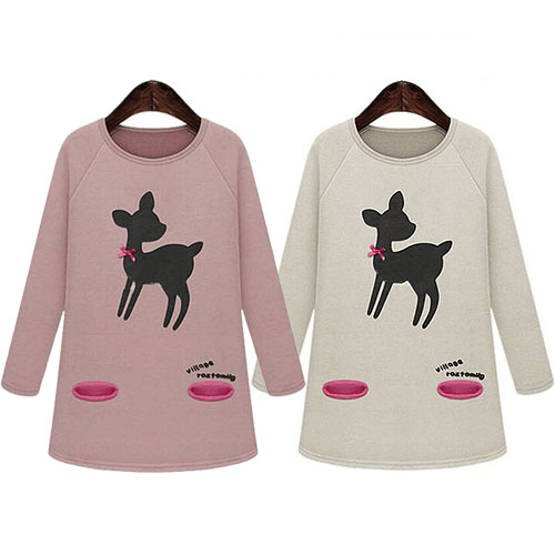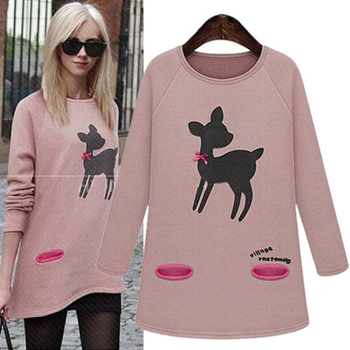 cute cartoon printed,with long sleeve and round neck design. Plus,its hand pockets at front makes