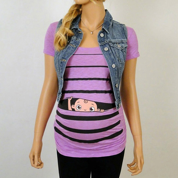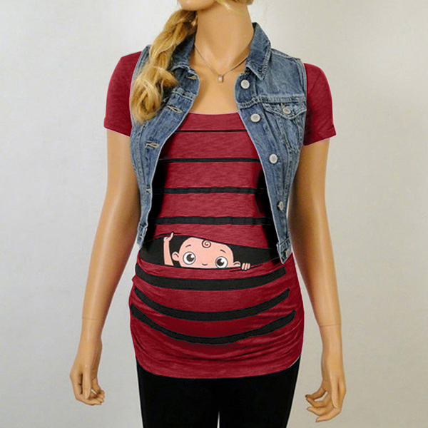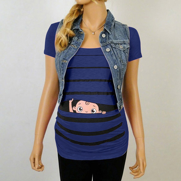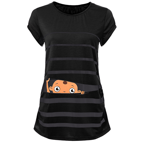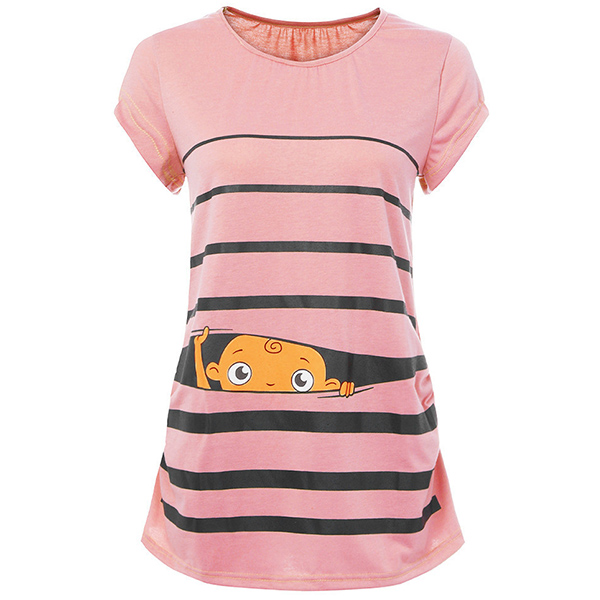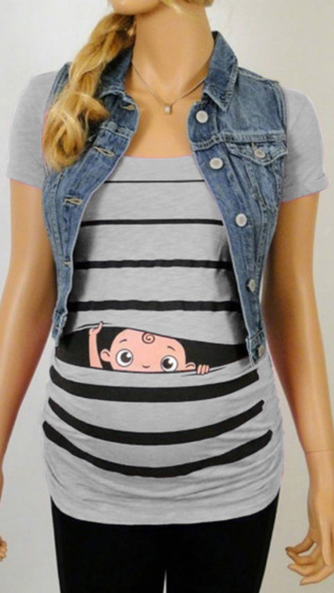 Cute Cartoon Printed Round Neck Tank Top for Pregnant Women
