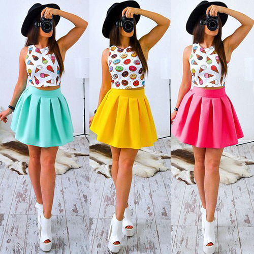 XL : Bust : 86cm - 106cm(33.86" - 41.73"); Waist : 70cm(27.56"); Tops Length : 39cm(15.35"); Skirt Length : 41cm(16.14");