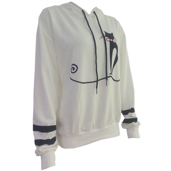 Easy to achieve for a cute,playful yet stylish style with this hoodie! The cat printed and striped element