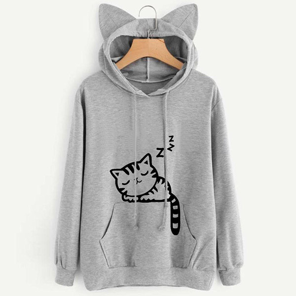 Wanna a cute,casual and playful style? Then let this hoodie grant your wish. The cat printed pattern and cat's ear shaped