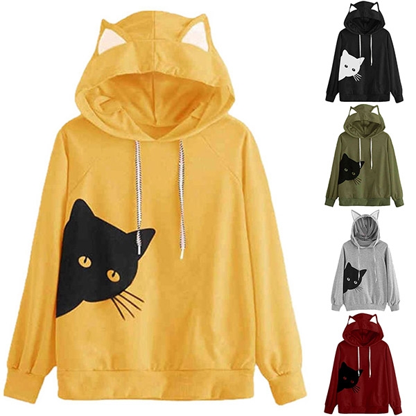 you this hoodie! The cat printed pattern design can lend you a dash of cute flavor. Finished with long sleeve,