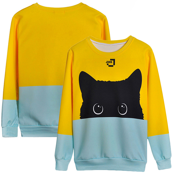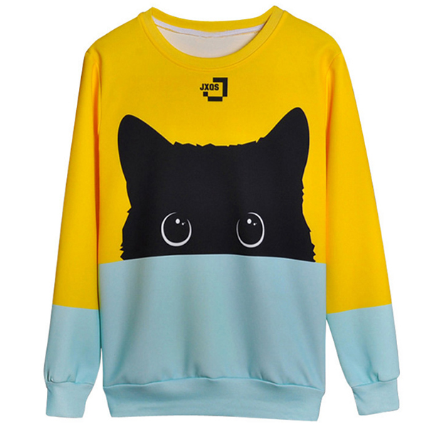 You would have a cute and playful style when you slip into this sweatshirt. Its cute cat pattern and contrast color design