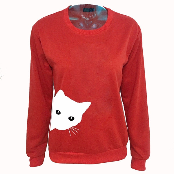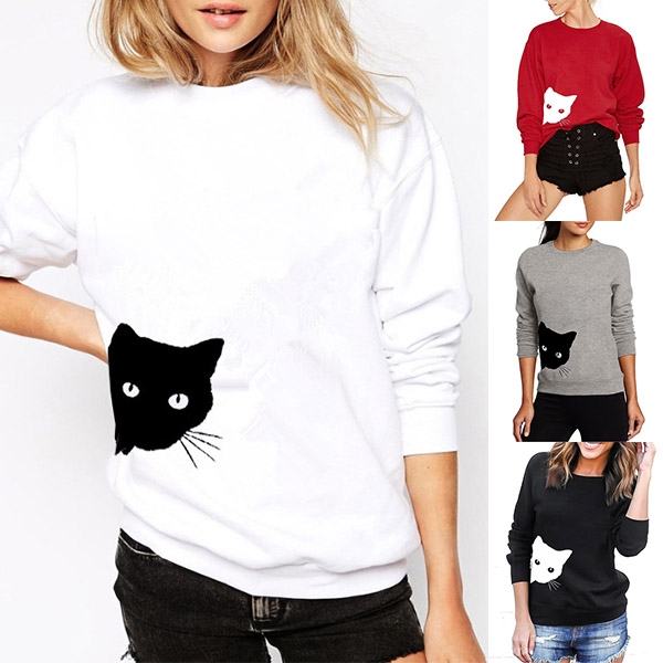 Effortless stylish and cozy,this sweatshirt is just what you need on your casual weekends. The cat