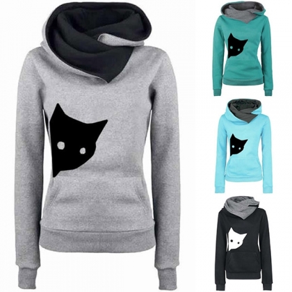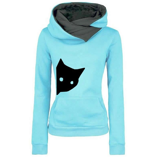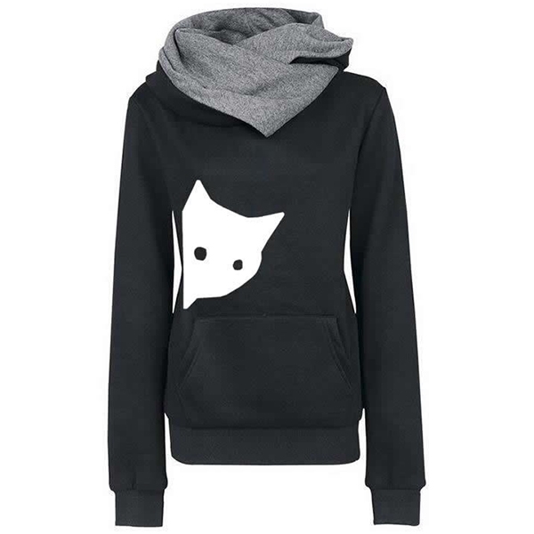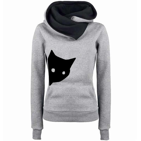 For a casual,relaxed and playful look,you can slip into this hoodie. The cat printed pattern design will