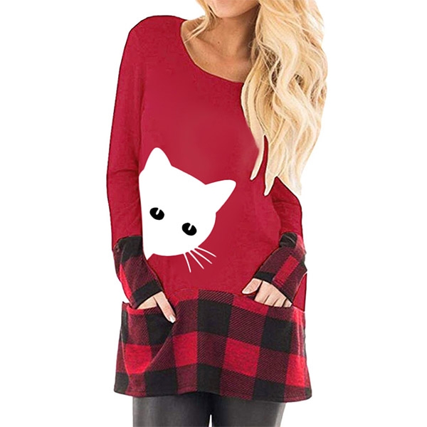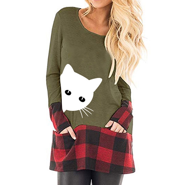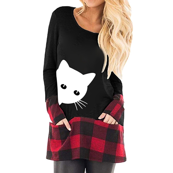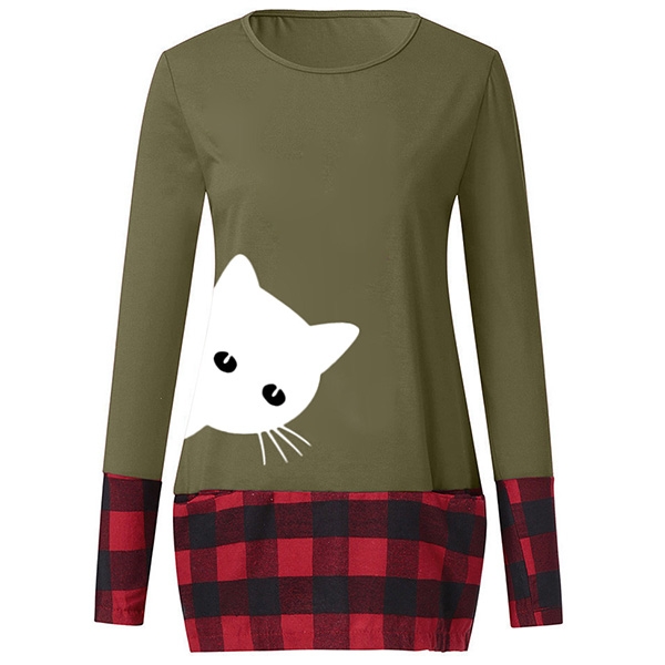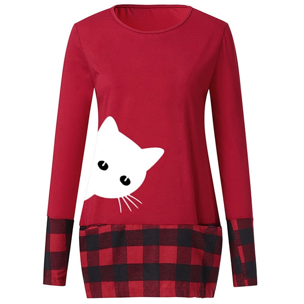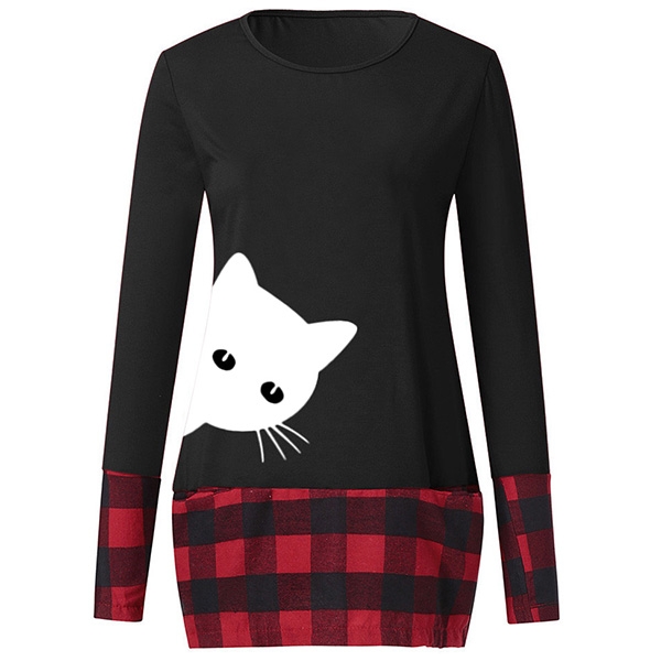 You can look playful yet stylish in this top. The cat printed pattern and plaid spliced design will enrich the