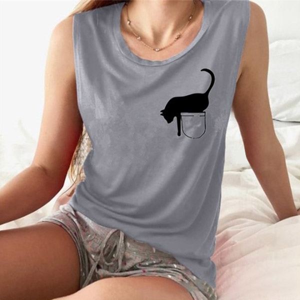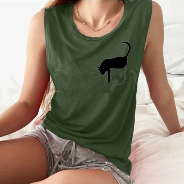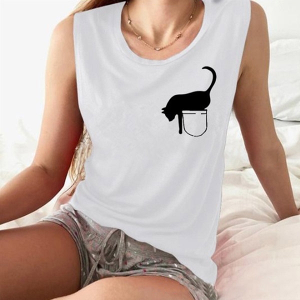 As a summer essential,this tank top is worth to arouse your attention. The cat printed pattern design lends