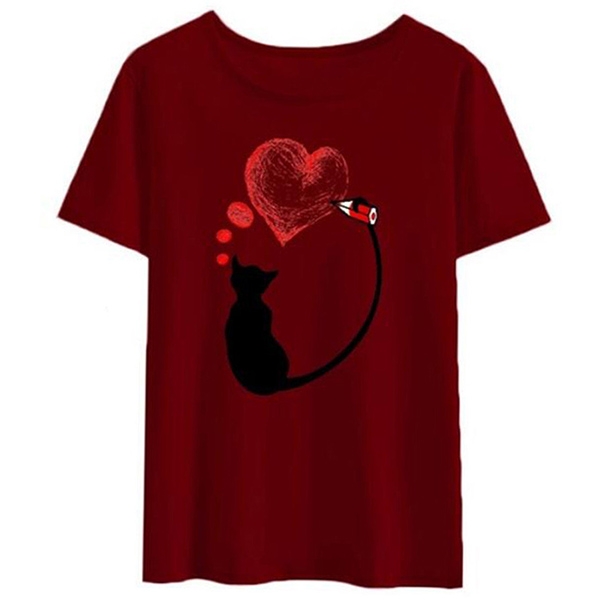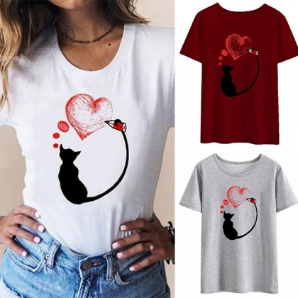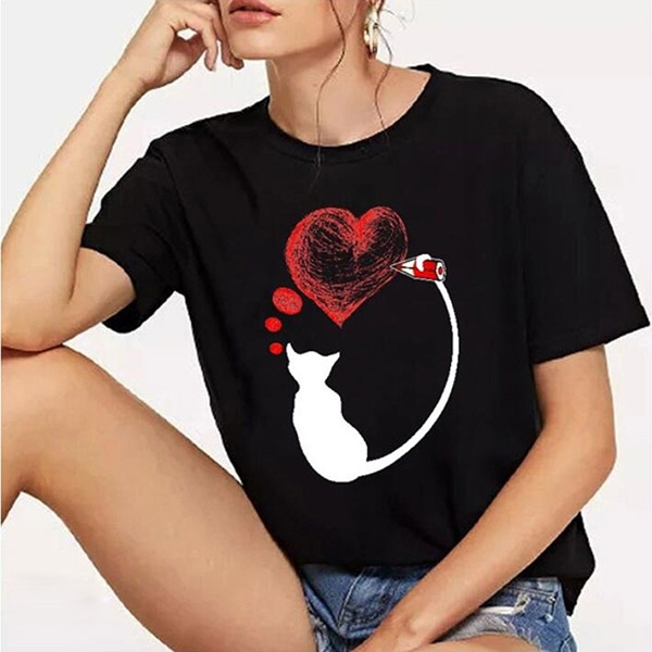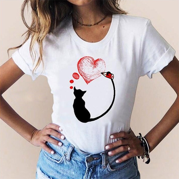 and round neck design,simple yet classic,while the cat printed pattern design can lend you a dash of cute