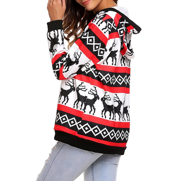 This hoodie features elk printed pattern,which lends you a dash of cute and playful vibes. On the other hand,its soft