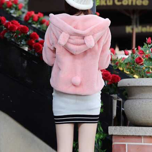 Cute Rabbit Ears Long Sleeve Hooded Plush Coat
