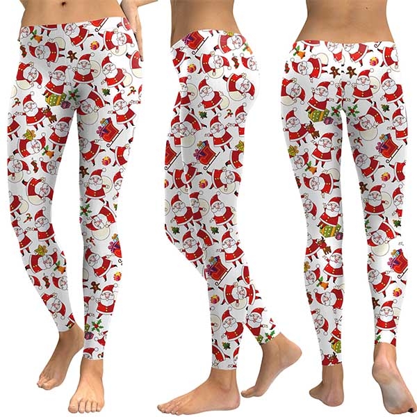You'll reach new heights in both your fitness and your style with this leggings. The Santa Claus printed