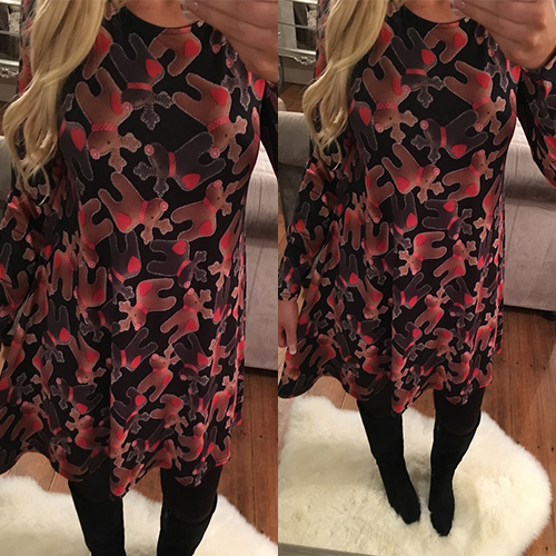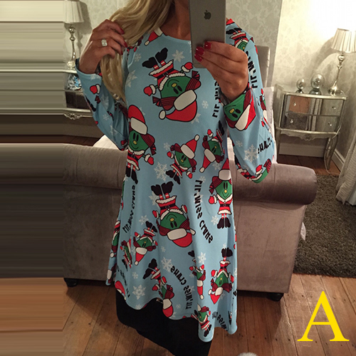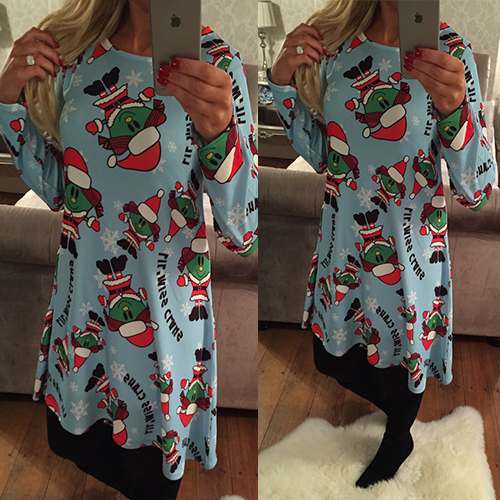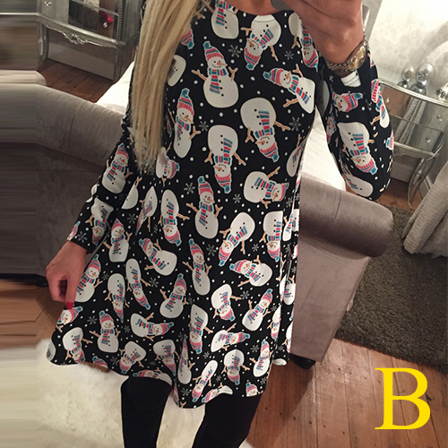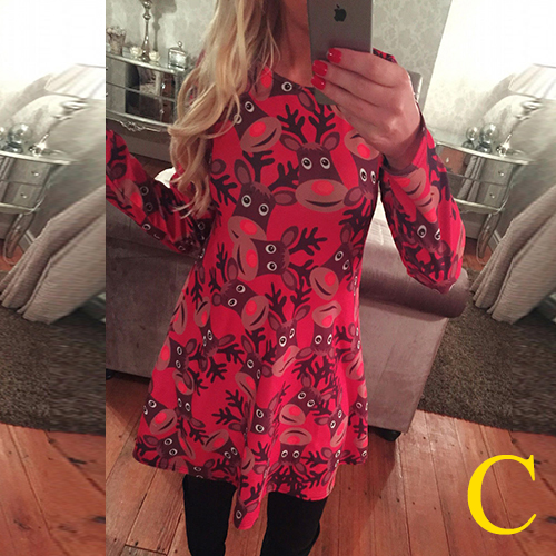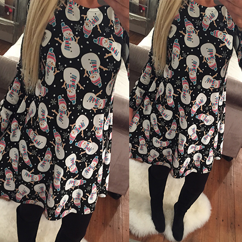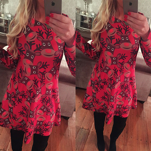 elk printed pattern, with round neck and long sleeve design, this dress can bring you a wonderful night.