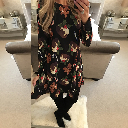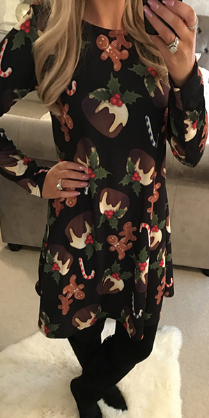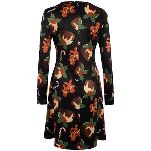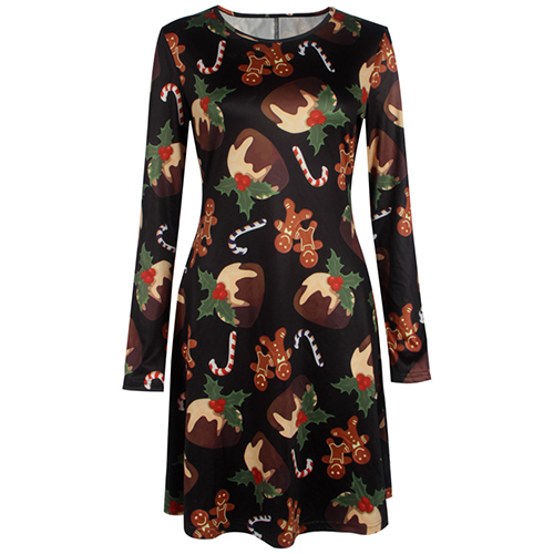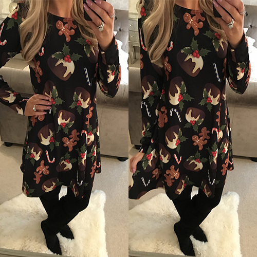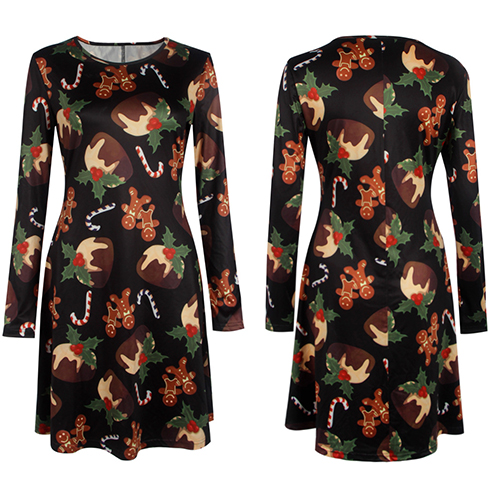 happy night. Equipped with delicious chocolate cake printed, round neck and long sleeve design,