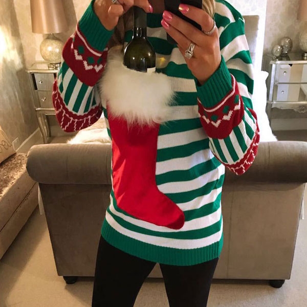 It owes to the Christmas sock spliced design,which makes this piece look very eye-catching and distinctive.