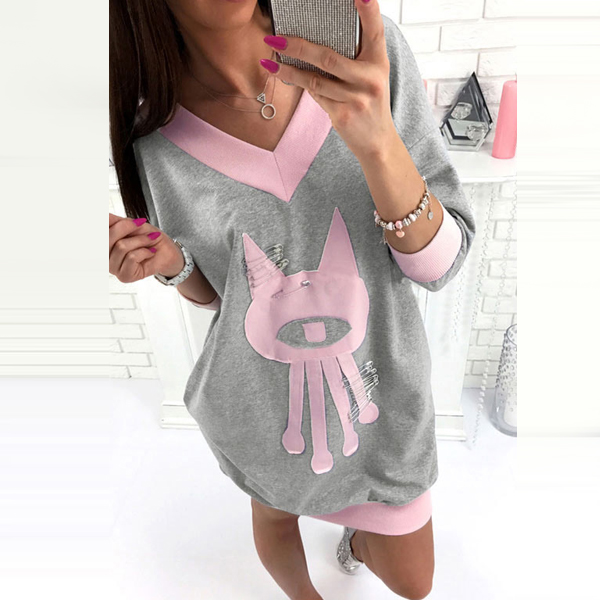 make this piece look so stylish and adorable. Designed with long sleeve,v-neck and a loose silhouette,this dress is sure