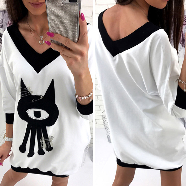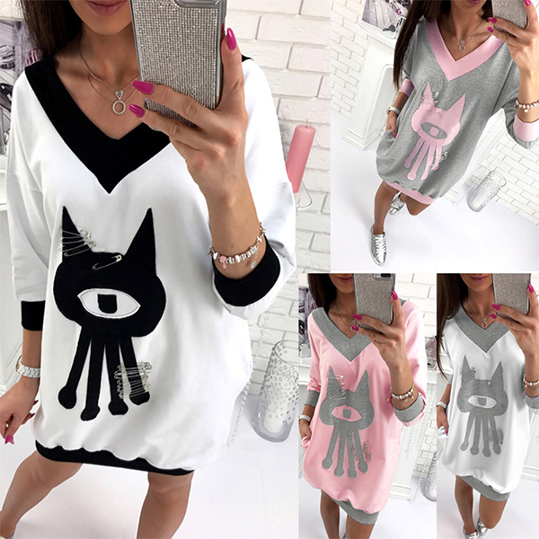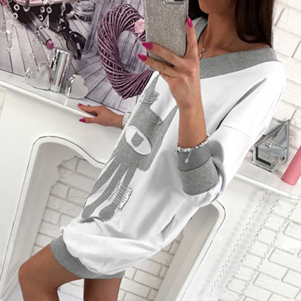 Wanna a cute and laid-back style? Then you can opt for this dress. The contrast color and cute cartoon pattern design