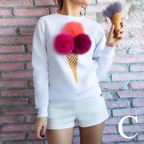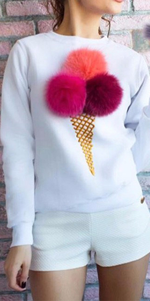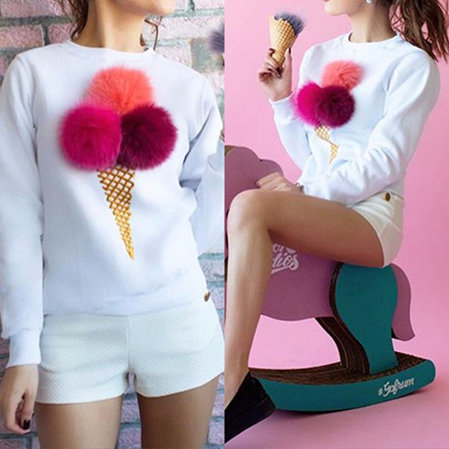 long sleeve design, the ice cream printed makes this piece more eye-catching. Besides, the puffer ball