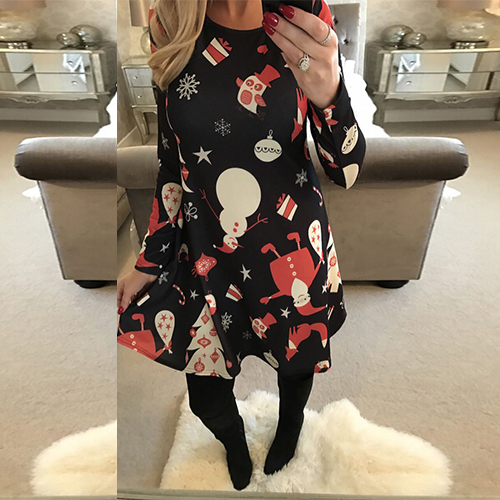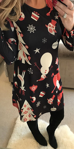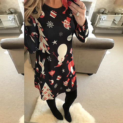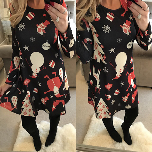 Designed with snowmen, snowflakes and Christmas tree printed, this dress brings a vibrant and youthful vibe