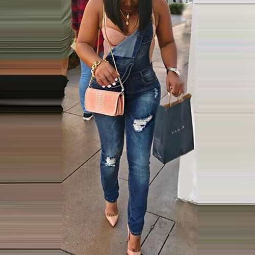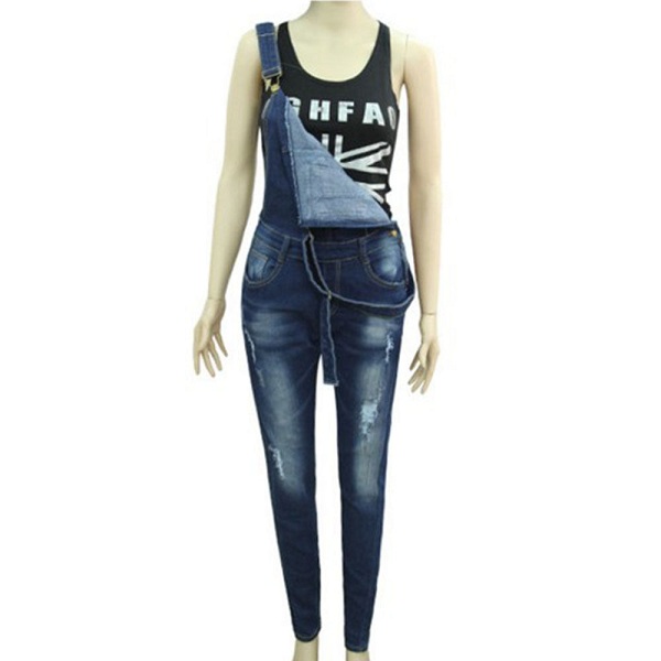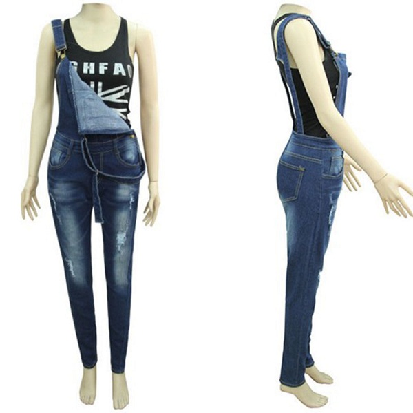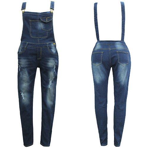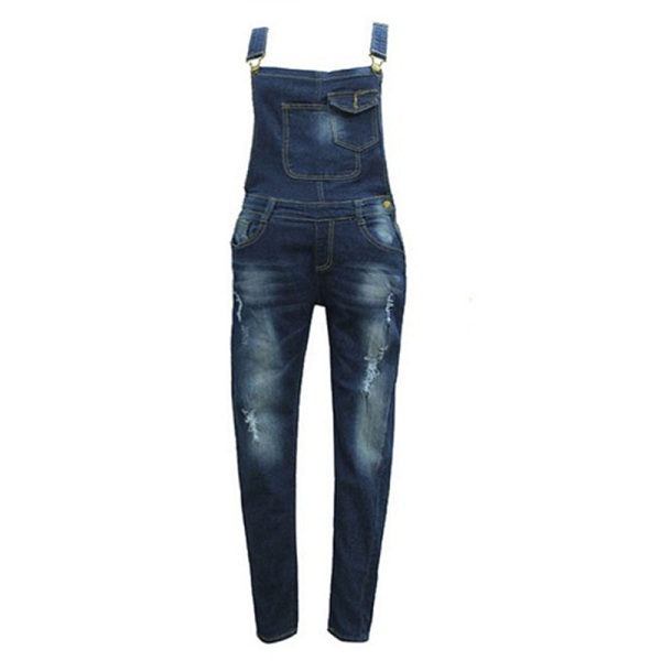Add a touch of youthful and chic vibe to your wardrobe ensemble with this denim dungarees. Its ripped details