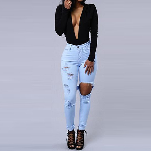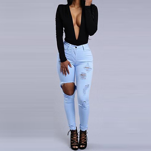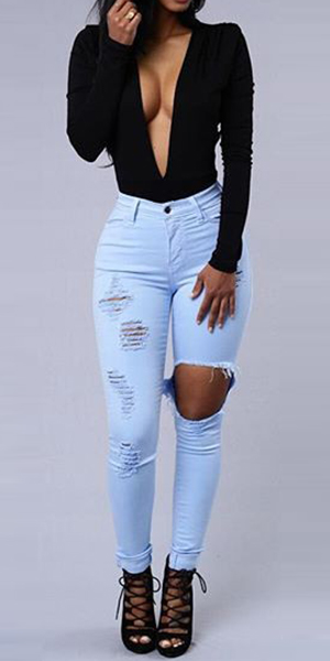 with ripped design,chic and stylish. Crafted from soft and stretch fabric,with high
