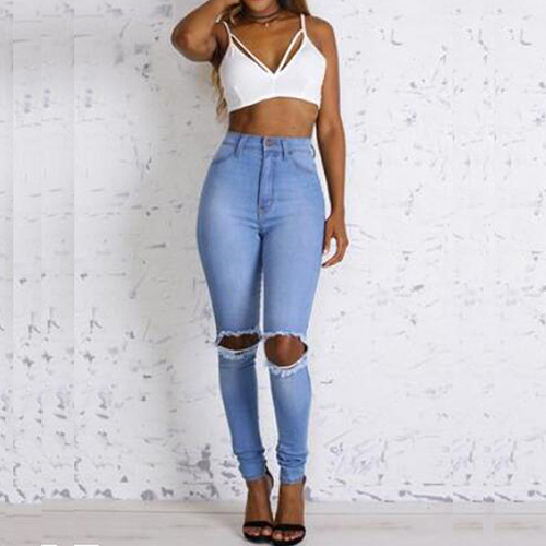 Get an update on your favourite staples with this skinny jeans. Styled with high waist and ripped details,
