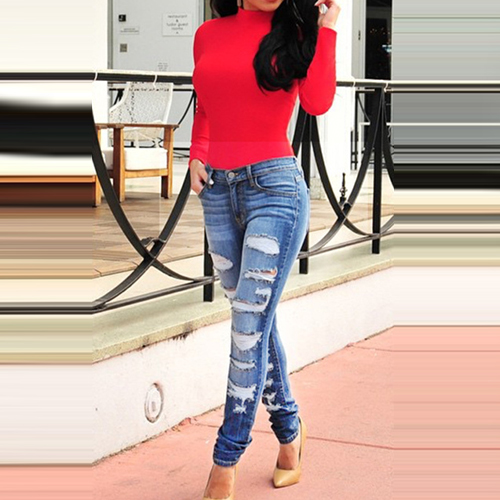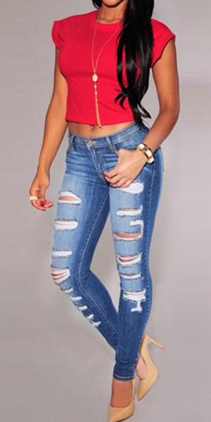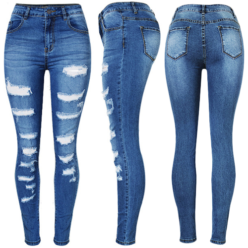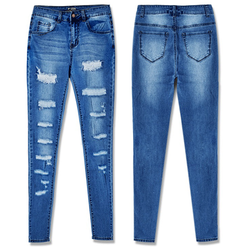 wearing effect, the jeans become a fashion trend. With high waist and ripped design, this pair of jeans
