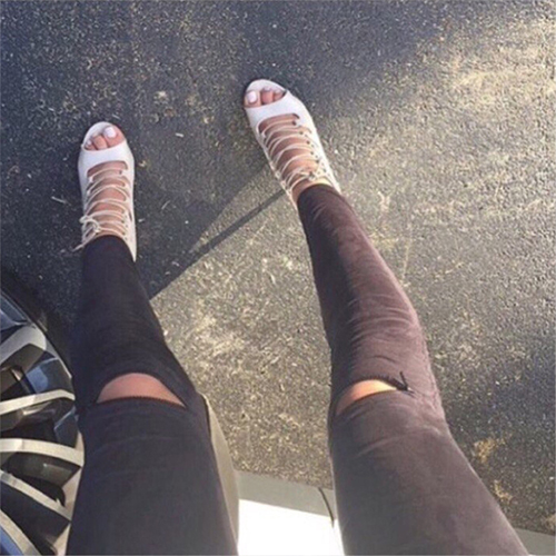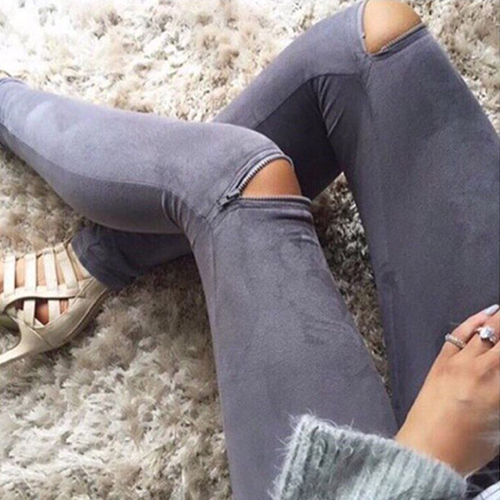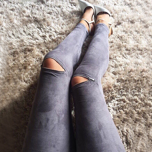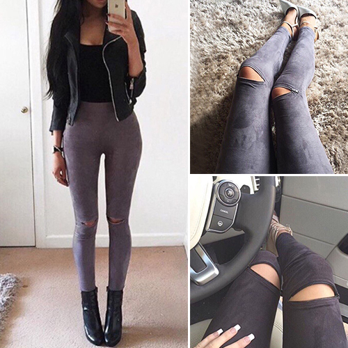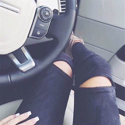 Your wardrobe should have such a stylish and all-match pants. Distressed style,its ripped design