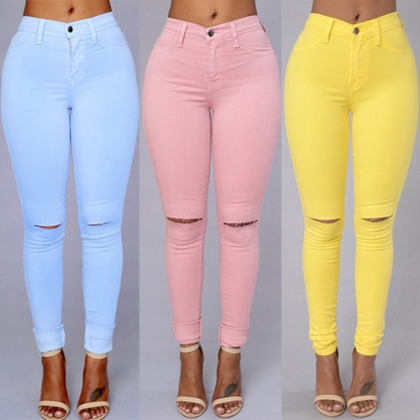 can perfect set off your slender legs. Distressed style with ripped design makes it look more chic.