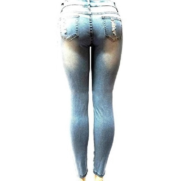 Its bleached and ripped details lend you a distressed and edgy style,and its skinny silhouette can perfect accentuate your slender legs.