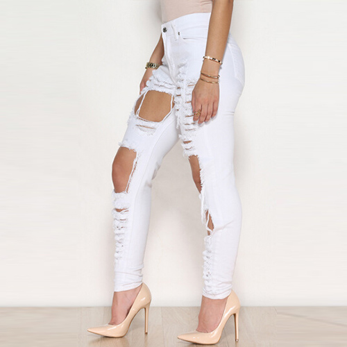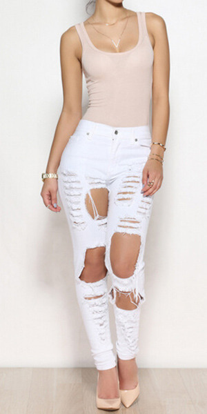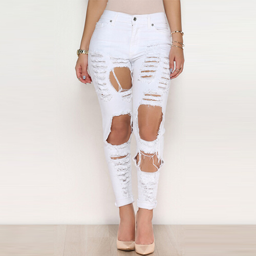 This jeans is your wardrobe essential. Distressed style,with ripped design,retro and stylish.
