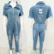 Rock up your chic and edgy style through this denim jumpsuit! It is styled with short sleeve,POLO collar,a fit silhouette and
