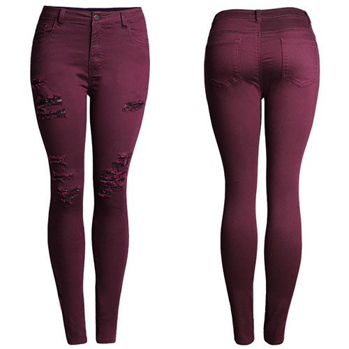 Distressed style,with ripped design,chic and stylish. Crafted from soft and stretch fabric,with high waist