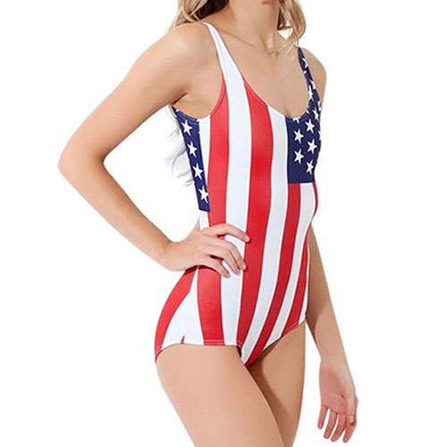 This one-piece swimsuit is cut from stretchy polyester and spandex fabric,and features American inspired stripes and stars print.Pair it with pool slides as you’re exploring the coast.