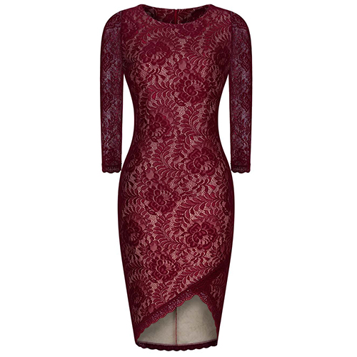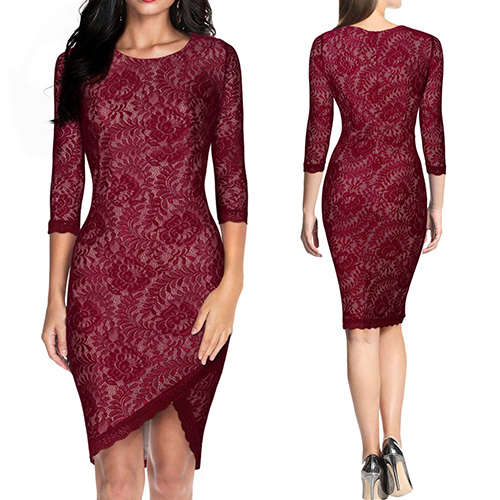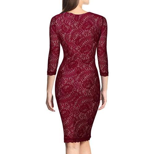 a fit silhouette,this lace dress can keep you elegant from daytime to night.