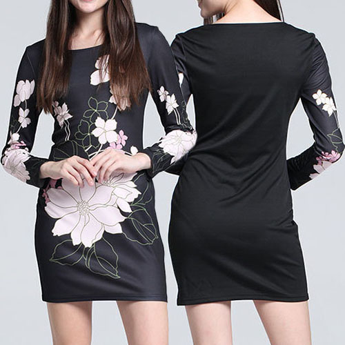with round neck and long sleeve design, concise and elegant. Complete with a slim-fitting silhouette, this dress