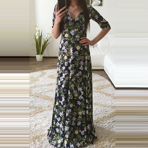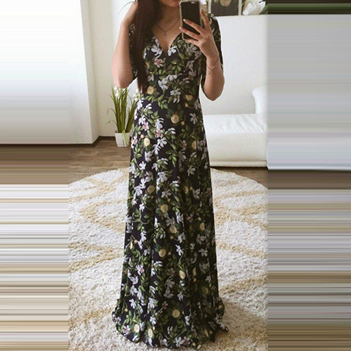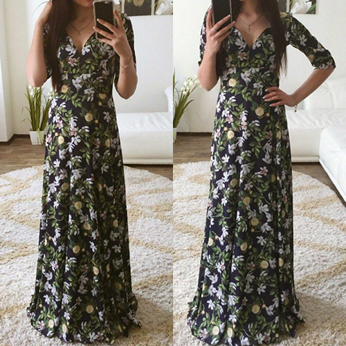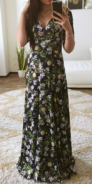 You would be shining in this beautiful maxi dress. Boasting a floral printed style, with v-neck, half sleeve and gathered waist