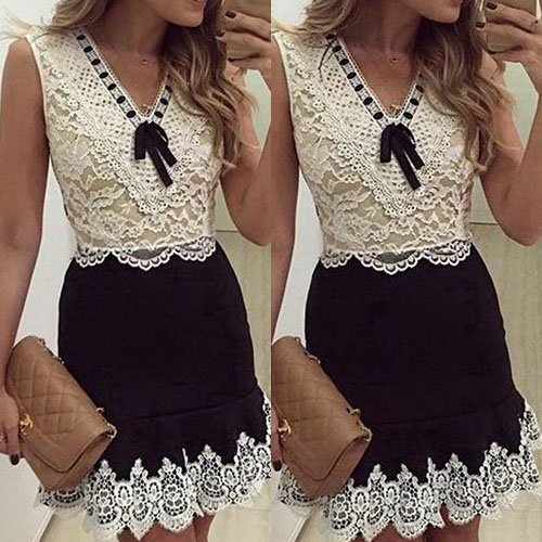 wear for the gatherings since you have this dress on hand. Its lace spliced and v-neck design lends you