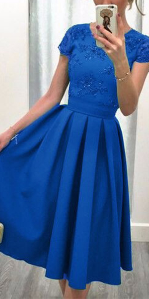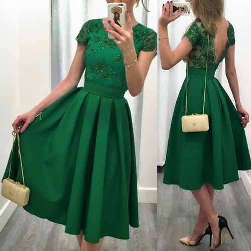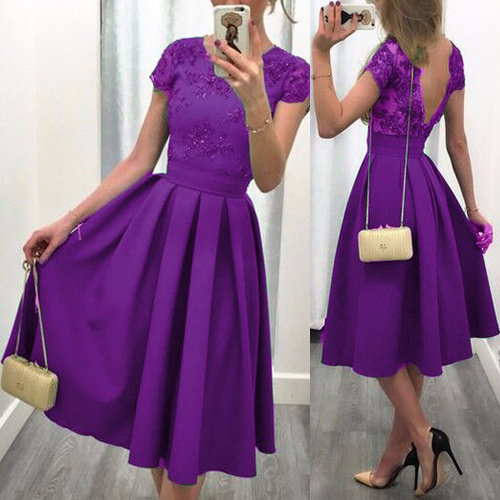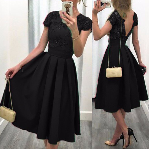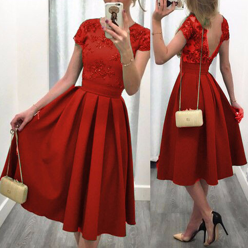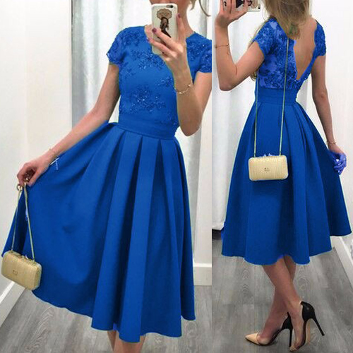 short sleeve and backless design, elegant and generous. Gathered waist design with pleated hem