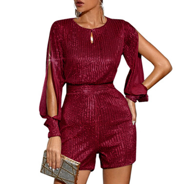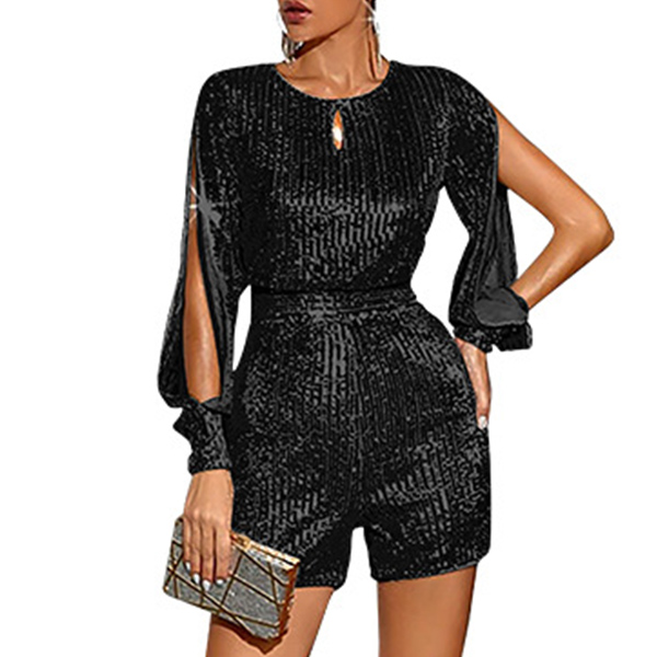 Elegant Long Sleeve Round Neck Slim Fit Sequin Rompers