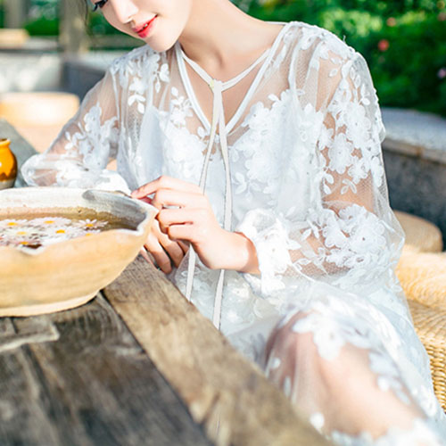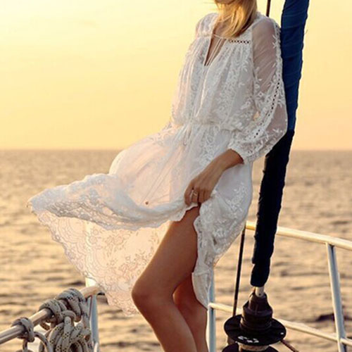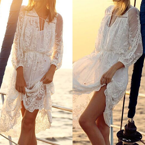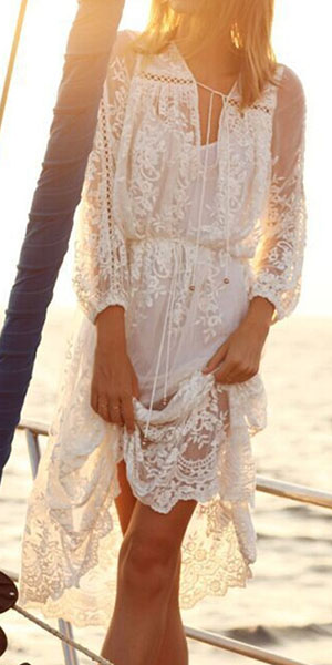 You are just like a charming fairy maiden in this white lace dress! Crafted from exquisite workmanship