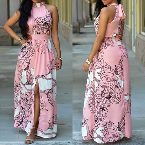 and glamorous girl. This dress boasts chic print, sleeveless and slit hem design, its gathered waist would