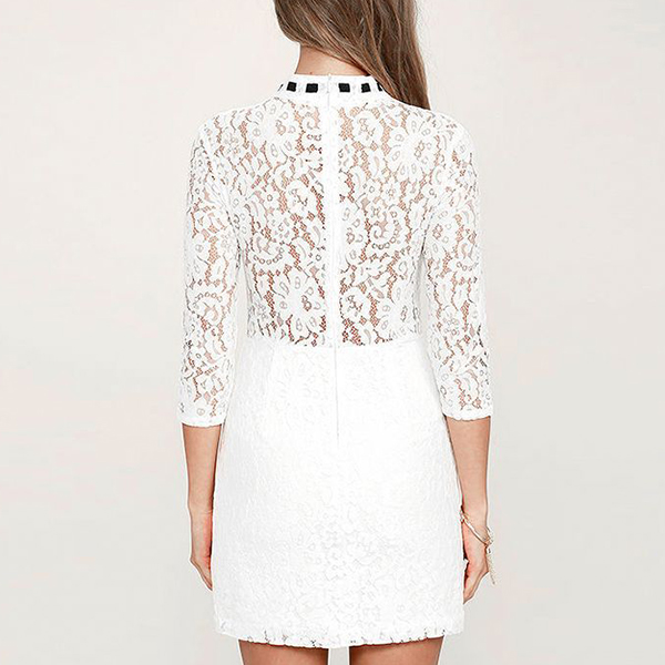 You can keep elegant and charming from daytime to night in this lace dress. Designed with 3/4 sleeve,round neck